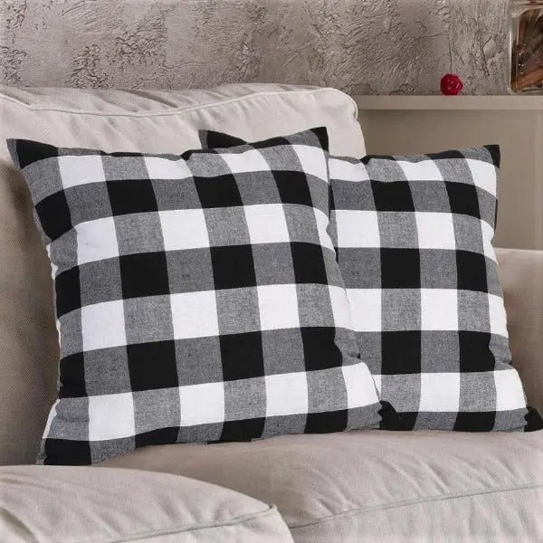 - Style : coussin décoratif au design industriel et motif damier