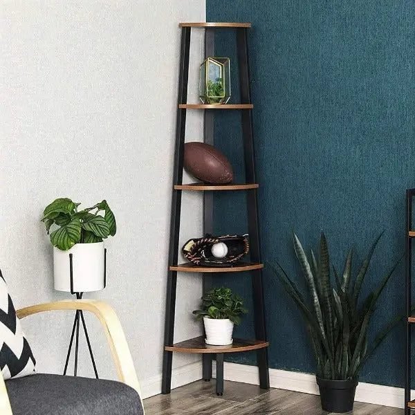 Étagère d’angle industrielle en palissandre — charme authentique et rangement optimisé