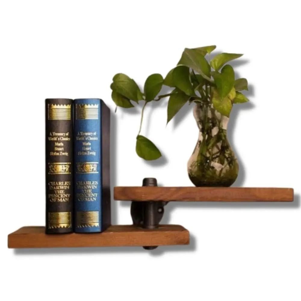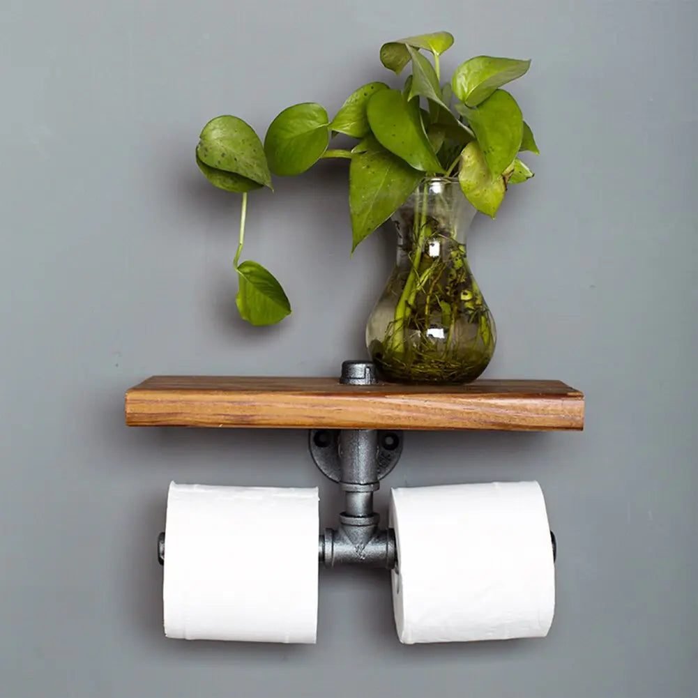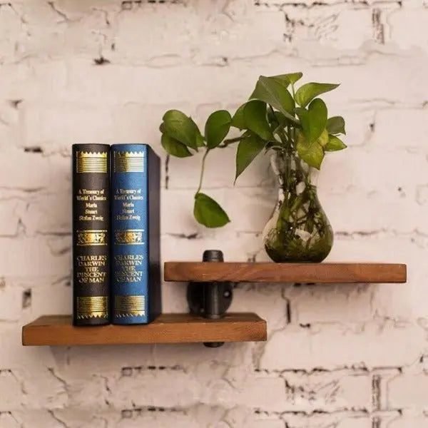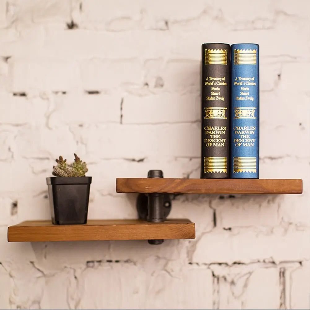 Étagère murale industrielle double en bois brut — design authentique, solide et pratique. Sublimez votre intérieur, commandez vite !